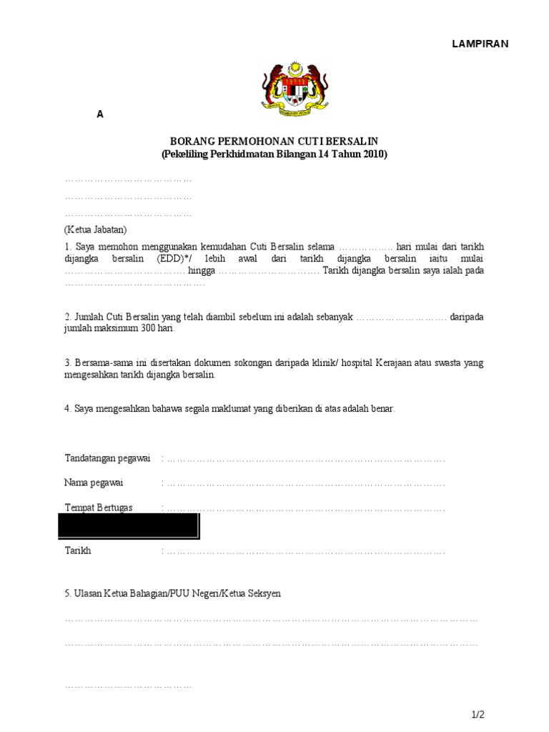 Permohonan Cuti Bersalin Tanpa Gaji Pdf